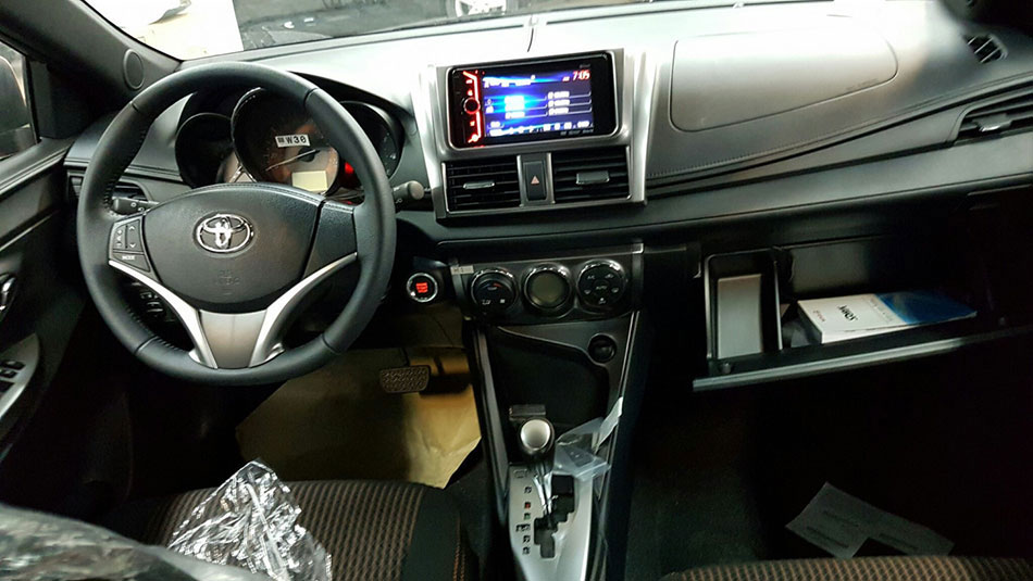 Nội thất phong cách thể thao với bảng đồng hồ thiết kế 3D kết hợp tông màu cam chủ đạo cùng đường viền mạ crôm. Màn hình hiển thị thông tin (bản Yaris G) tích hợp trong bảng đồng hồ giúp người lái dễ dàng quan sát các chỉ số. vô-lăng 3 chấu thể thao. Phiên bản Yaris G với tay lái bọc da và mạ bạc.